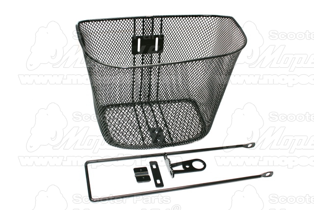 kerékpár kosár első, sűrű szövésű acélháló, méret: 36,5x26x26, tartozékokkal, fekete MTB