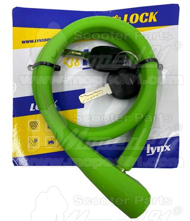 kerékpár lakat 10x600 mm,szilikon kulcsos lakat, a védő szilikon anyag nem karcolja meg kerékpárját, elegáns kialakítás, puha tapintás és rugalmasság, UV rezisztencia, pasztel-zöld, LYNX