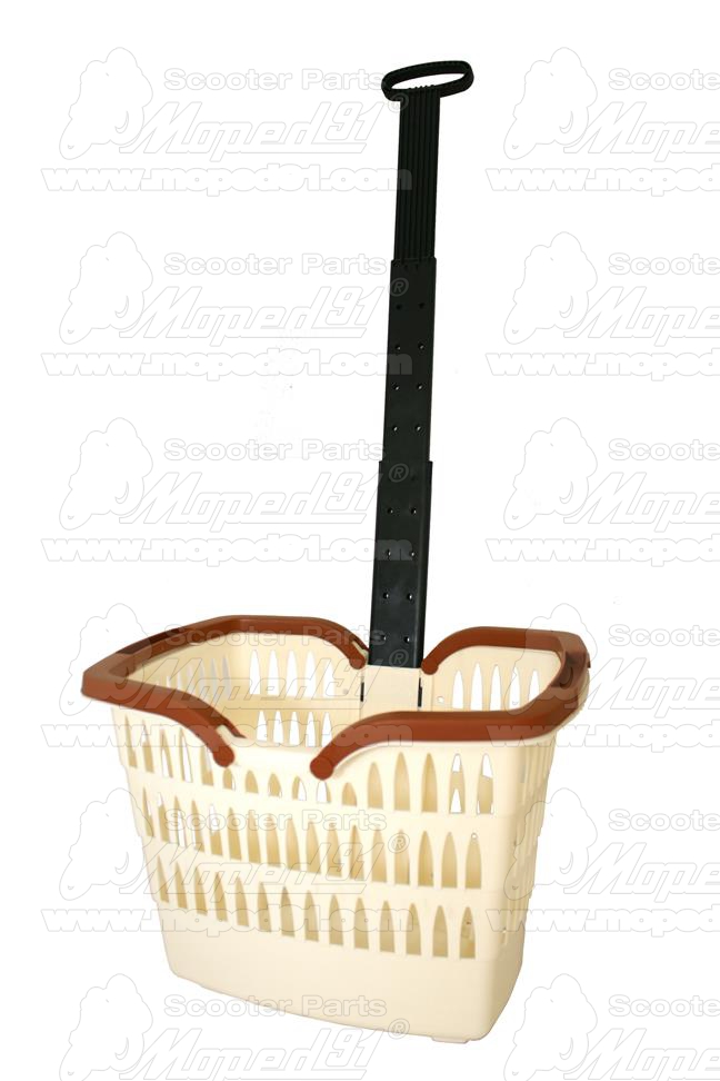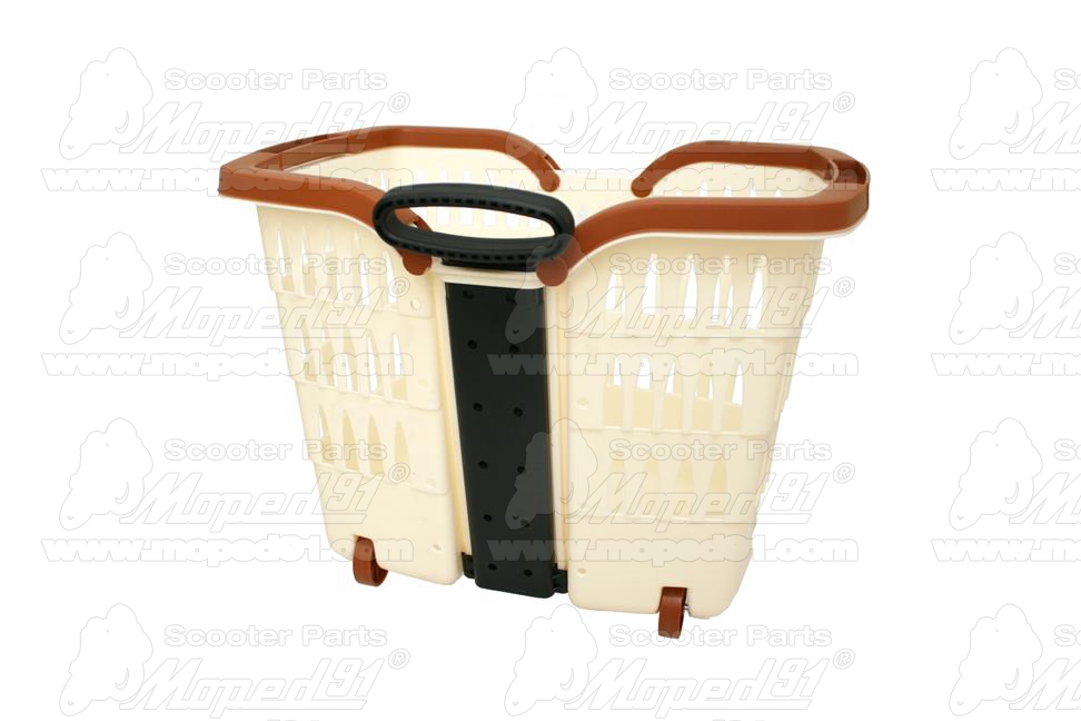 kerékpár kosár első, kormányra, 32 mm 25/22 mm, műanyag kerekekkel és teleszkópos fogantyúval, ütésálló műanyag, krém színű, LYNX