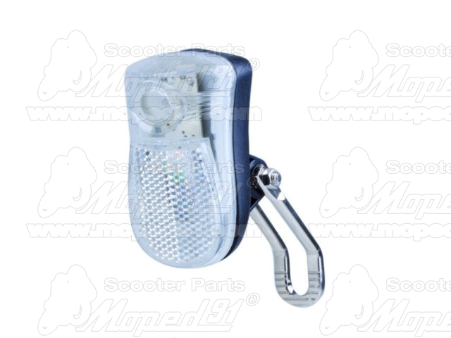 kerékpár lámpa első, 1db fehér leddel, 2 funkciós, elemes, beépített reflektorral, ki-be kapcsolóval, lámpatartóval, MTB, LYNX Német minőség