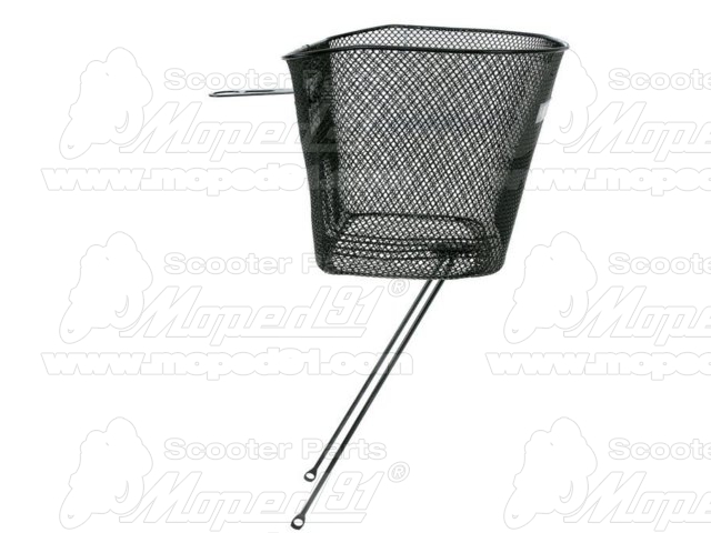 kerékpár kosár első, 26-28 col-ig, ovális, sűrű szövésű acélháló, 1 1/8 col kormányszárra, erősítéssel, rögzítésére a kormányszár és az első agyra, méret: 35 x 25 x 25/22 cm, tartozékokkal, fekete szí Tovább >>