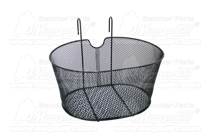 kerékpár kosár első sűrű szövésű, ovális-akasztható, kormányra, méretek: magasság: 18 cm. felső résznél: 39 x 28 cm. alsó résznél: 30 x 21 cm
