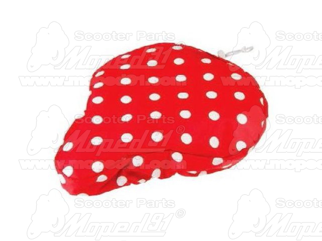 kerékpár nyereghuzat, pöttyös minta, feszítő zsinórral, 10 mm szivacsos párnázattal, univerzális méret: 250 x 230 mm. Német minőség