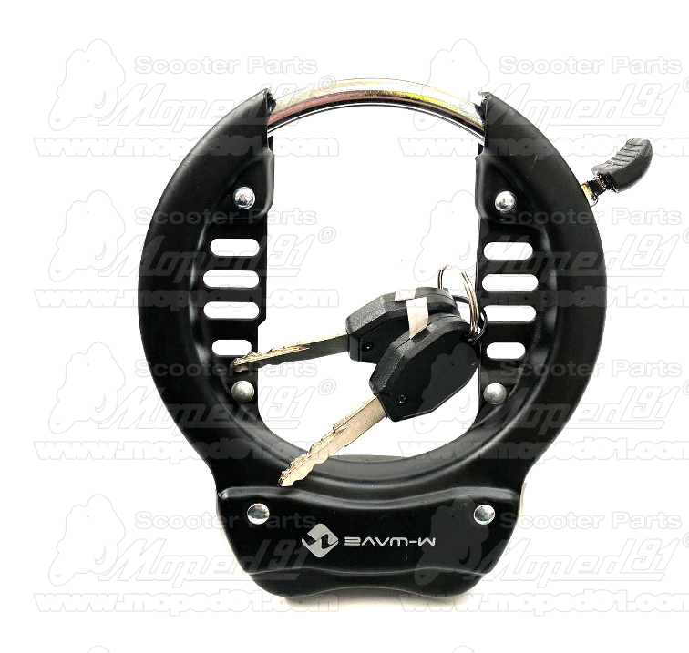 kerékpár RETRO lakat, belső átmérő 70 mm, bármely kerékpárra, extra erős, kulccsal és világítással, állítható felfogatás,fekete