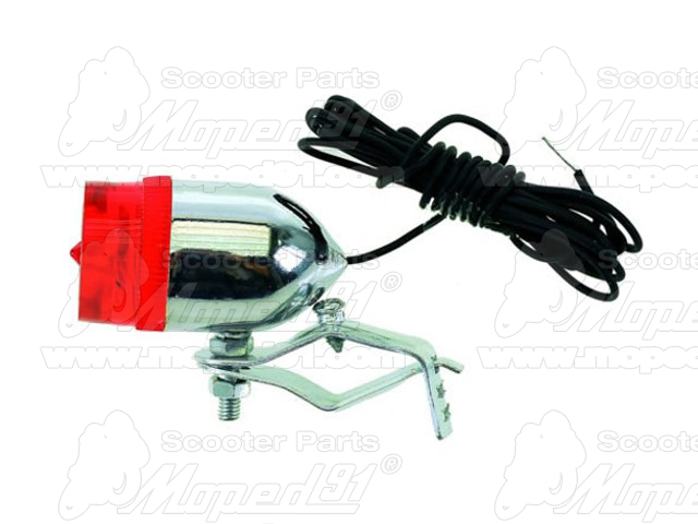 kerékpár lámpa hátsó, dinamós, RETRO, 6V / 0.5W izzóval, 160 cm vezetékkel, krómos
